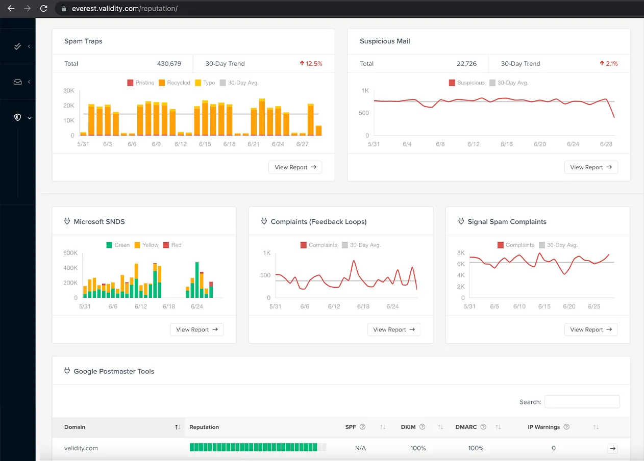 Everest provides comprehensive email deliverability tools and DMARC reporting for large organizations.